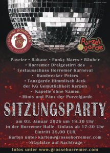 Sitzungsparty der KG Grosse Horremer von admin · Veröffentlicht 10. September 2025 · Aktualisiert 10. September 2025 Sichert euch jetzt Karten unter: karten@grossehorremer.com Wir freuen uns auf euch !